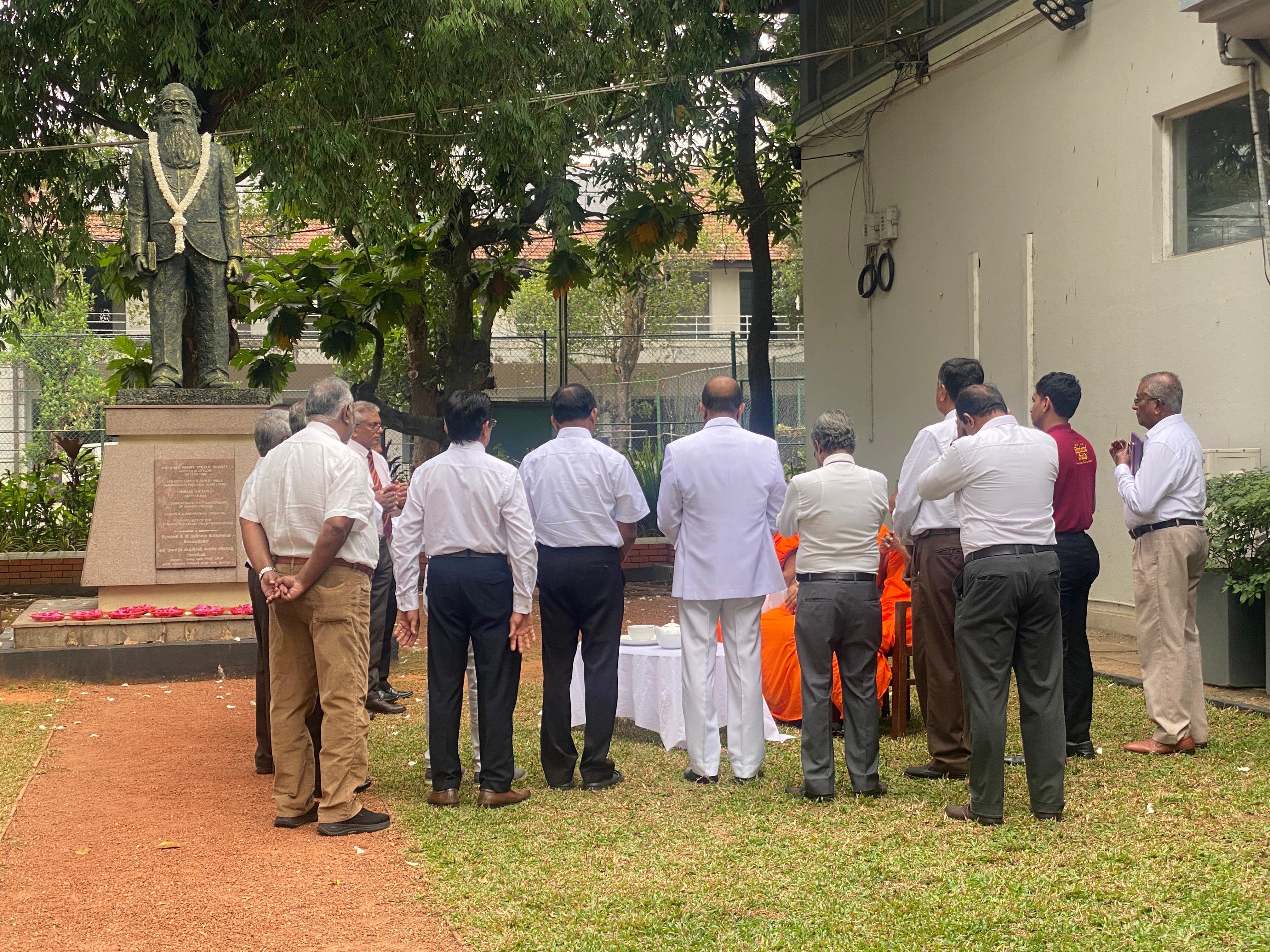 Ananda College solemnly marked the 119th Olcott Commemoration Day in honour of Colonel Henry Steel Olcott, the visionary founder of the Buddhist Theosophical Society and a pioneer of Buddhist education in Sri Lanka. The event was organized by the Senior Old Anandians’ Association together with the Old Anandians’ Buddhist Association, reflecting the continued dedication of the alumni community in preserving and honouring the rich heritage of the college. The occasion served as a tribute to Colonel Olcott’s invaluable contribution toward the establishment and progress of Buddhist schools, including Ananda College, and his enduring commitment to strengthening Buddhist education in the country. The ceremony was attended by the Principal of Ananda College, Mr. D. M. L. P. Dissanayake, members of the academic staff, and several distinguished Senior Old Anandians who gathered to pay homage to this great benefactor. Their presence highlighted the deep respect and gratitude the Ananda fraternity continues to hold for Colonel Olcott’s pioneering efforts during a significant era in Sri Lanka’s educational history. Religious observances were conducted by the Venerable Maha Sangha of Ananda College, creating a spiritually uplifting atmosphere within the college premises. The chanting of Seth Pirith and other religious activities invoked blessings upon the institution, its students, staff, and alumni. The 119th Olcott Commemoration Day was thus observed with dignity and devotion, reaffirming the college’s steadfast commitment to the noble ideals and values established by Colonel Olcott.